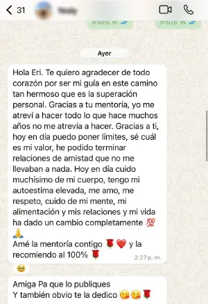 Ahora tengo 30 años y gracias a que me convertí en una mujer imparable disciplinada he retomado, mi poder personal, autoestima, amor propio, confianza conmigo misma y el tener 3 hijos no ha sido impedimento para que logre la vida de mis sueños . .
